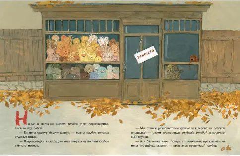 В одном небольшом магазинчике шерсти живут разноцветные мотки и клубочки, и каждый из них о чём-то мечтает. Кто-то хочет стать тёплым свитером, кто-то - зимней шапкой, а кто-то был бы рад подружиться с котёнком. Только клубок в рыжую крапинку не мог ничего придумать.