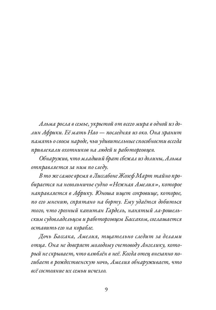 1787 год, приключения Альмы и Жозефа продолжаются. Корабль «Нежная Амелия» наконец добирается до Нового Cвета, как и его обедневшая хозяйка и тезка Амелия Бассак. Троих молодых людей теперь связывает пропавшее сокровище, но у Альмы только одна цель — найти на континенте младшего брата, пусть и среди тысяч рабов. Пираты и политики, бывшие невольники и дельцы — все встретятся на этой земле, где куется будущее. И уже слышно из-за океана, как отмирает старый мир. Французская революция все ближе.