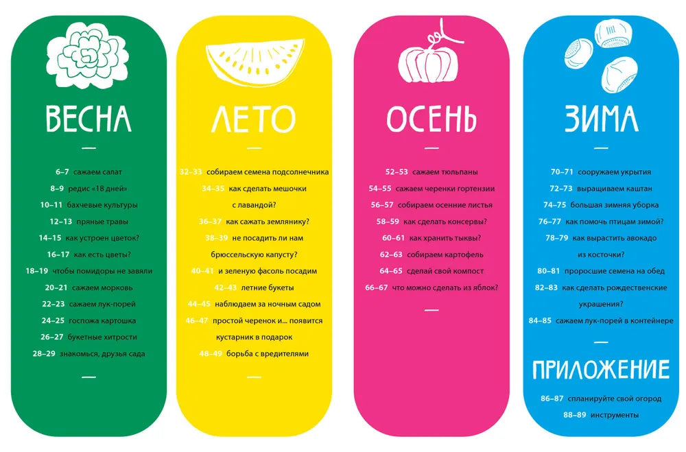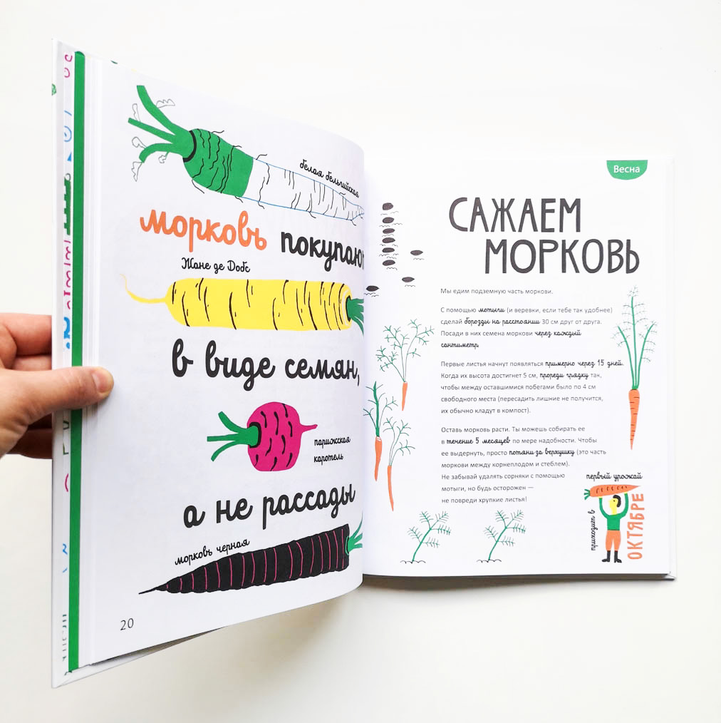 Ты умеешь сажать редиску? А делать компост? Теперь вне зависимости от сезона – на балконе, в саду или огороде, летом, зимой, осенью и весной мы знаем что делать: сажаем семена, выращиваем, собираем урожай и пробуем собственные овощи! Пятьдесят доступных и веселых активностей, чтобы дети в городах и деревнях могли познать радости копания в земле. В смысле, садоводства!