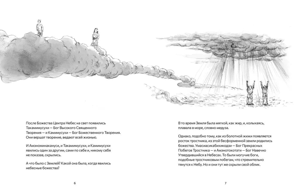 Первый свиток «Кодзики» рассказывает о рождении богов, сотворении мира и начале Древней Японии. Мир этот еще совсем юный, а боги, что населяют его, живут отчаянно и без оглядки. Они радуются и скорбят, влюбляются и ненавидят, мстят и прощают, развязывают войны и заключают перемирия. Они так похожи на людей.