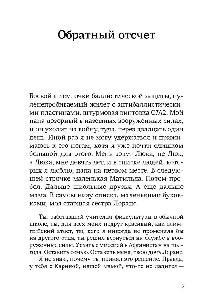 Лоранс пятнадцать, Люке девять, а Матильде меньше года. Жизнь меняется в один день, когда папа, на котором дома всё держалось, принимает решение отправиться на войну в Афганистан в составе миротворческой миссии. Все привычные семейные роли рушатся, а вместо них воцаряются страх, ожесточённость и непонимание. Пока отец рискует погибнуть на чужой войне, к ним в дом приходит своя, внутренняя война. Чтобы пережить её, некоторым придётся преждевременно повзрослеть.