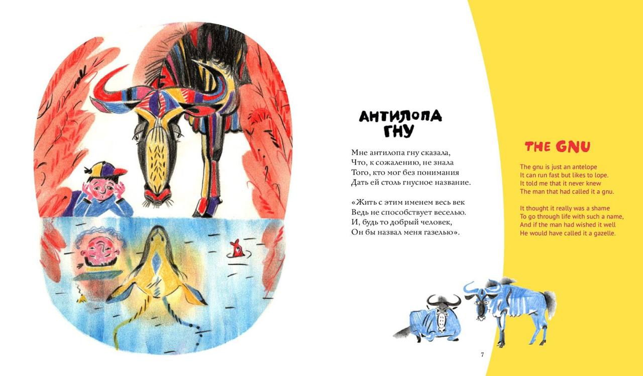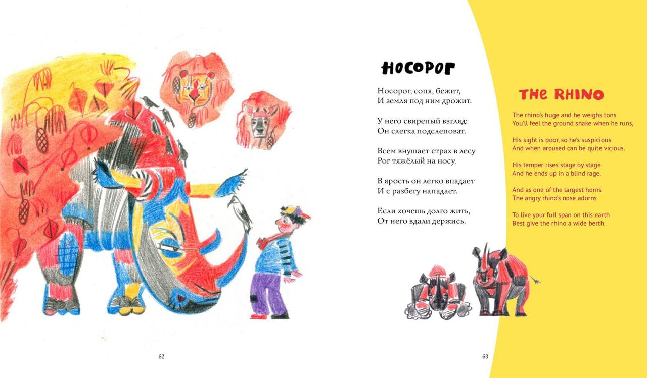 Книга Полины Черниловской была написана на английском языке, а потом переведена писателем Давидом Маркишем. Она наполнена забавными стихотворениями о животных и птицах со всего света. На страницах, проиллюстрированных Софьей Диманд, место нашлось всем: экзотическим животным Австралии, хорошо знакомой корове и ежу, множеству лягушек, своенравным пернатым, трудолюбивому червяку, скромнице устрице и даже лесной соне. Рассматривать яркие развороты, читать смешные истории и узнавать тонкости англо-русского перевода будет интересно и детям, и их родителям, изучающим языки.