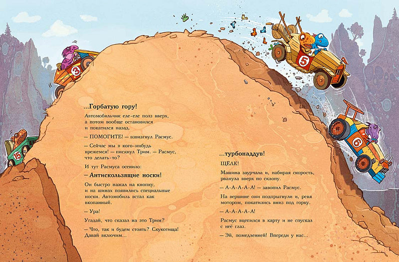 Серию о приключениях друзей-динозавриков сочинили и нарисовали писатель Ларс Мэле и художник Ларс Рудебьер. Вместе они создали целую страну Динозаврию, где на каждой странице ребёнка ждёт что-то смешное и неожиданное. В книге много диалогов, поэтому она отлично подойдёт для чтения вслух и разыгрывания по ролям с детьми от 4-х лет.