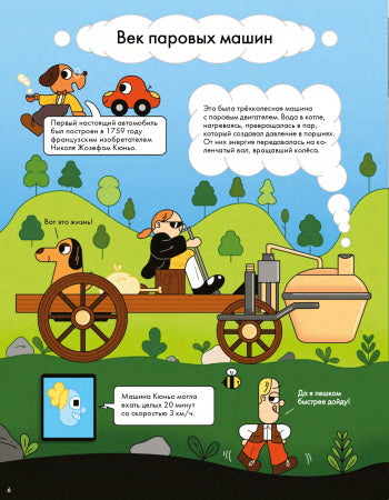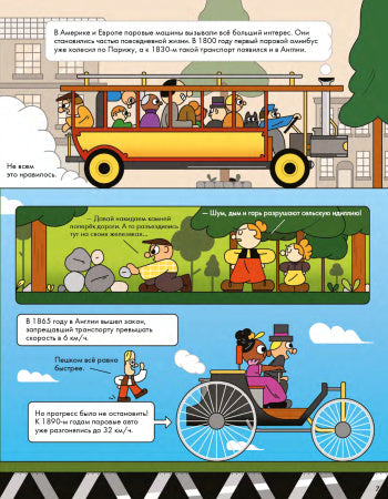 С древнейших времён людям хотелось создать самодвижущую повозку. Сначала на пружинах, затем на ветре и парусах, наконец, на пару, электрической тяге и бензине. Вместе с профессором Гавгафордом Маклапом и его друзьями, Машинкой и Кнопкой, мы изучим «Историю автомобиля в комиксах», узнаем про известные машины, устройство двигателя, типы автомобилей, о том, кто и зачем придумал автогонки, а также посмотрим, можно ли создать безвредную для окружающего мира машину.