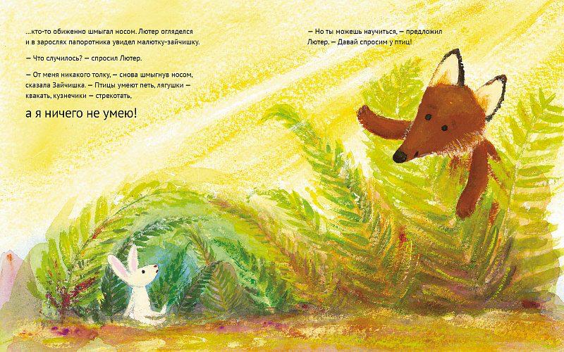 Наконец-то лето! Можно целый день лежать в тени деревьев и слушать, как щебечут птицы, квакают лягушки и стрекочут кузнечики. Но подождите, кто это плачет? Это Зайчишка, она расстроилась, потому что ничего не умеет: ни щебетать, ни квакать, ни стрекотать. Лисёнок Лютер уверен, что всему можно научиться. Вместе они устроят великолепное представление!