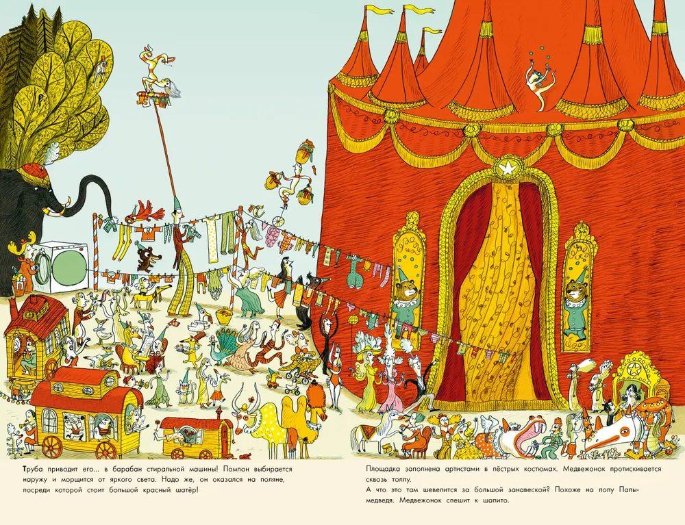 "Когда у меня заканчивается фантазия, я рисую в уголке листа кого-то из знакомых, занимающимся глупостями, - и заливаюсь смехом. Очень важно, чтобы сам я много смеялся, пока рисовал книжку", - говорит французский художник Бенжамен Шо, дважды номинант на Премию Андерсена. Теперь наша очередь радоваться! Рассматривать большие страницы с приключениями незадачливого медвежонка Помпона и его папы и находить всё новые детали хочется снова и снова.