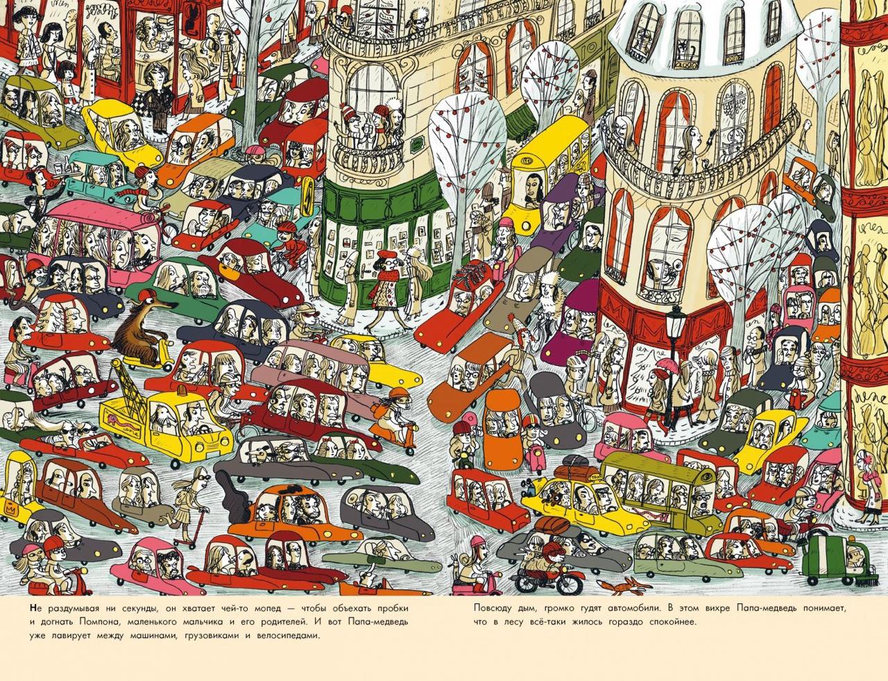 "Когда у меня заканчивается фантазия, я рисую в уголке листа кого-то из знакомых занимающимся глупостями - и заливаюсь смехом. Очень важно, чтобы сам я много смеялся, пока рисовал книжку", - говорит французский художник Бенжамен Шо, дважды номинант на премию Андерсена. Теперь наша очередь радоваться! Рассматривать большие страницы с приключениями незадачливого медвежонка Помпона и его папы и находить всё новые детали хочется снова и снова.