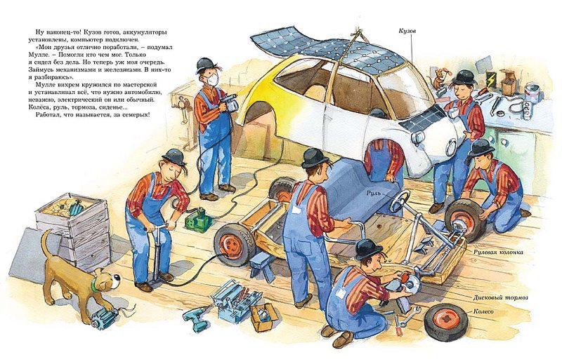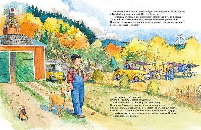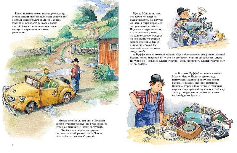 Умелый механик Мулле Мек – известный герой многих детских книг. В каждой из них Мулле собирает автомобиль или мотоцикл, строит лодку, самолёт или уютный дом и в процессе работы делится с читателями ценными сведениями о том, как всё это устроено и как работает. А ещё у Мулле Мека есть помощница – верная собака Буффа. Без неё не обходится ни одно начинание хозяина.