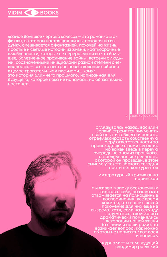 Самое большое чертово колесо» — это роман-автофикшн, в котором настоящая жизнь, похожая на выдумку, смешивается с фантазией, похожей на жизнь. Простые и светлые истории из жизни, краткосрочные влюбленности, которые не переросли ни во что большее, болезненное проживание войны, встречи с людьми, обозначенными инициалами разной степени очевидности, — все это пестрое повествование собрано в целое трогательными письмами... кому?