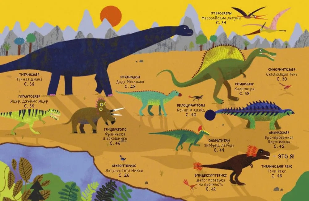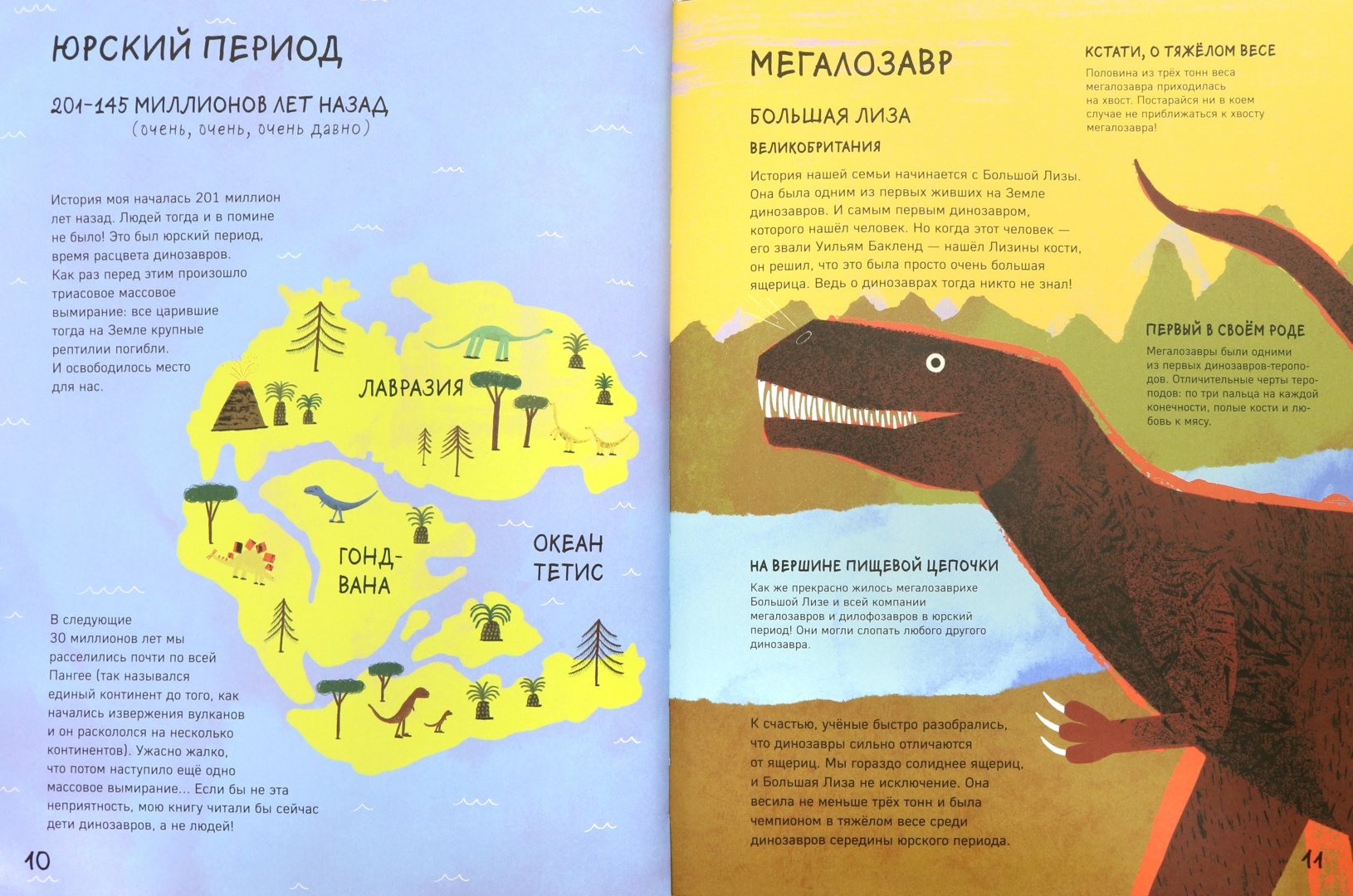 Эксперт по динозаврам Майк Бентон (и какой эксперт! Его именем назван один из видов динозавров!) и иллюстратор Роб Ходжсон придумали для рассказа о динозаврах прекрасную форму: мы будто листаем страницы семейного фотоальбома и узнаем о каждом из видов древних ящеров как о родном и близком существе. Иногда даже кажется, что мы зашли к ним в гости!