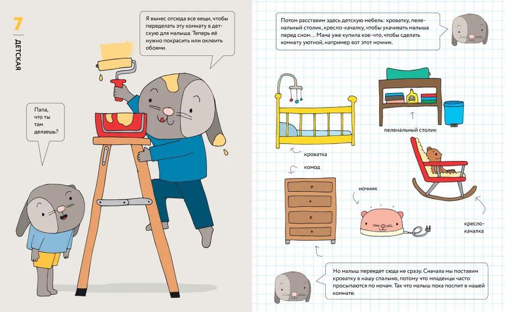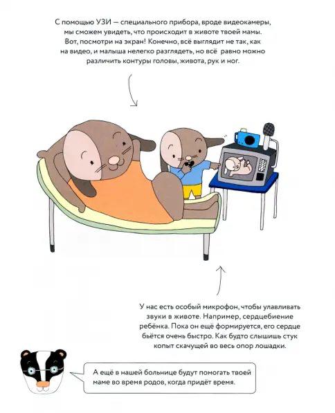 В середине книги есть специальные игровые страницы. Можно всем вместе отсчитывать время до рождения младшего братика или сестрёнки и выполнить 12 заданий.