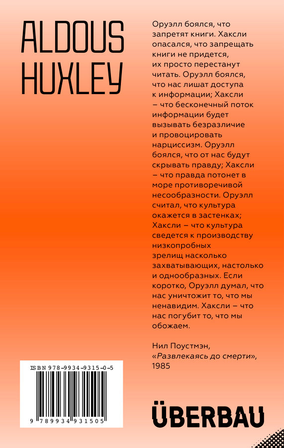 Об авторе: Олдос Хаксли (1894–1963) — английский писатель, известный в первую очередь по антиутопии «О дивный новый мир» (1932). Изучал литературу в Баллиольском колледже в Оксфорде, первый свой роман написал в 17 лет. Был преподавателем французского языка у Джорджа Оруэлла. Одна из главных тем книг и публицистических произведений Олдоса Хаксли — проблема дегуманизация общества в процессе технологического прогресса, решить которую он предлагал, вооружившись идеей деятельного пацифизма.