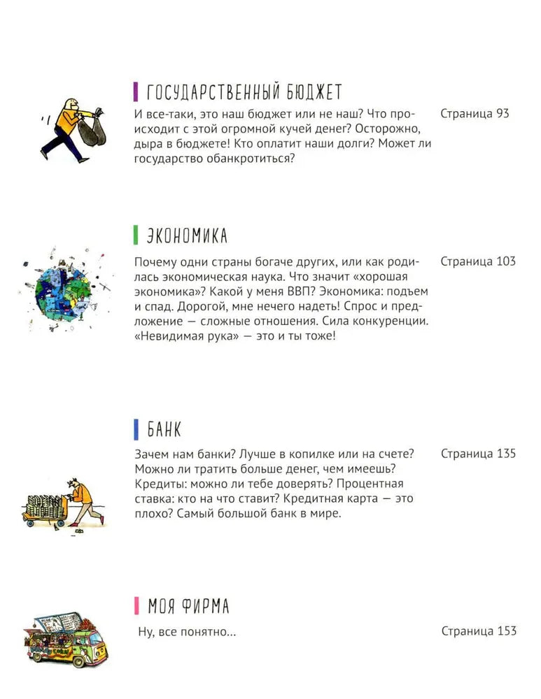 Все, что образованному человеку любого возраста нужно знать об экономике, вы найдете в этой книге. Кто платит бабушке и дедушке пенсию? Что такое банк и зачем он дает кредиты? Где прячутся налоги? Как формируется бюджет государства? И даже – как спасти экономику от кризиса? Экономика – это одна из тех тем, которые родители не обсуждают с детьми, потому что – как справедливо отмечает автор – часто и сами не разбираются.