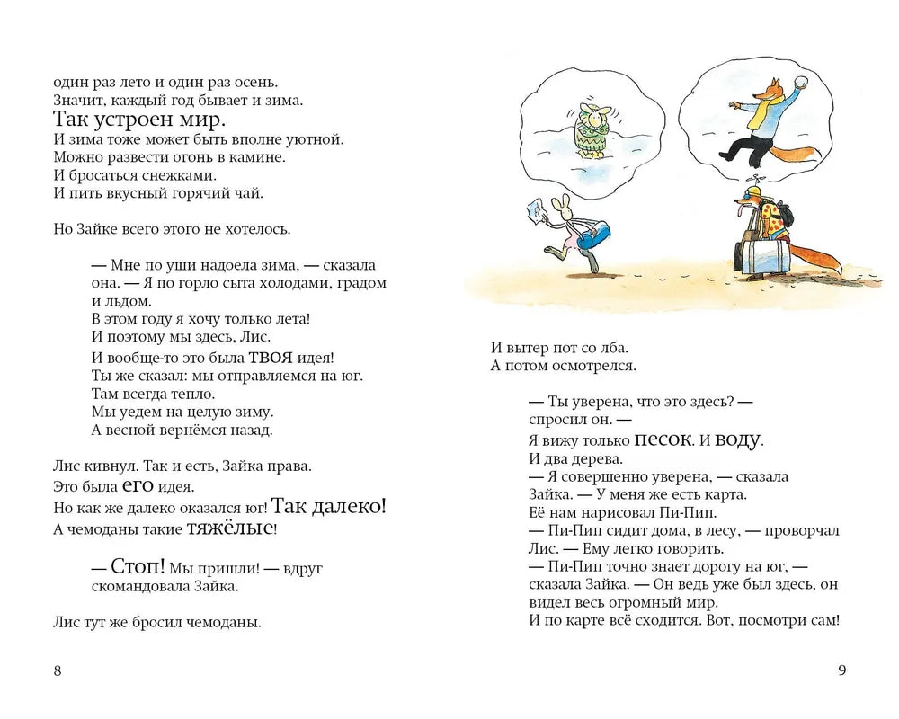 Зайка не любит зиму, ведь зимой в лесу очень холодно. Лис и Зайка отправляются подальше от снега и мороза: на остров, где всегда тепло.