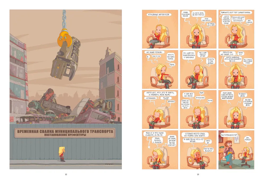 «Лу! Кладбище автобусов» — третий том суперпопулярной во Франции серии рисованных историй про 12-тилетнюю девчушку Лу и её маму. Новый учебный год не задался с самого начала: дом Тристана снесли и на его месте устроили свалку отживших свой век автобусов, Лу и Мину распределили по разным классам, и закадычным подружкам пришлось разлучиться, мама потеряла голову от любви и долгожданного выхода книги и, кажется, напрочь забыла про свою дочь. А в жизнь Лу тем временем врывается нечто совершенно непонятное и пугающее, и называется эта напасть «переходный возраст».