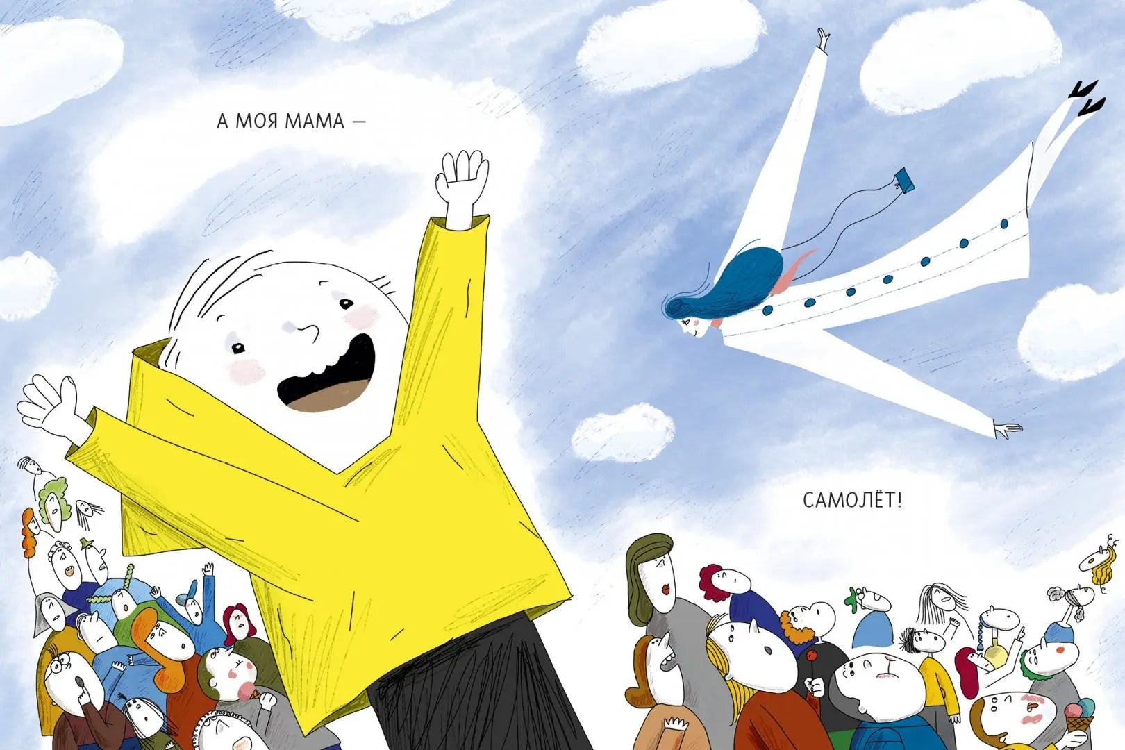 Все мамы удивительные, каждая по-своему. У героя этой книжки мама умеет летать, она быстрее всех самолетов в небе, она разгоняет тучи и дружит с солнцем, горами и вулканами. Она — мама-самолет!