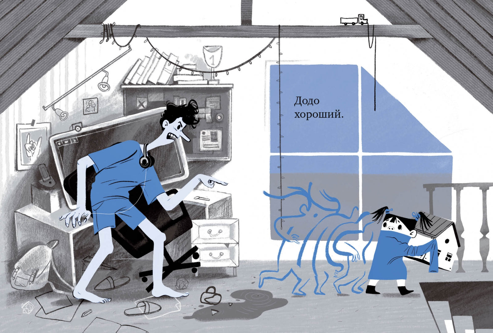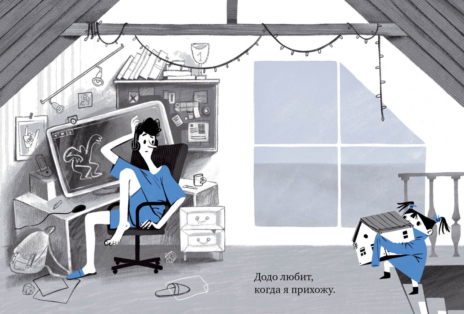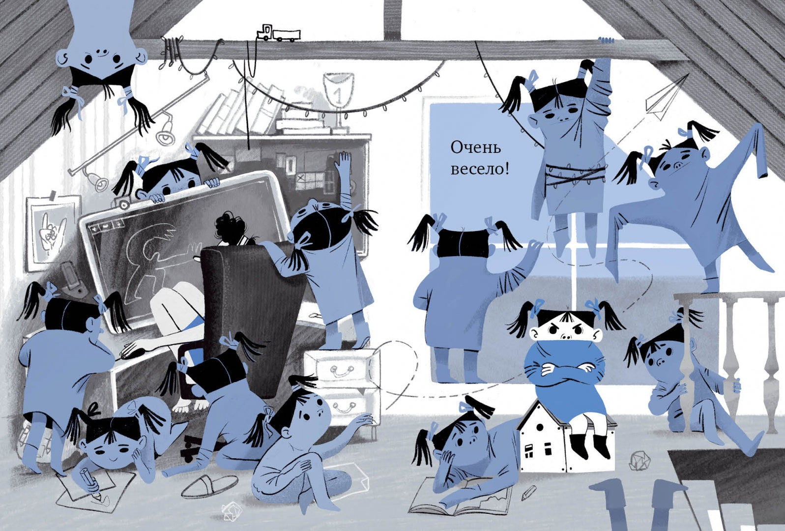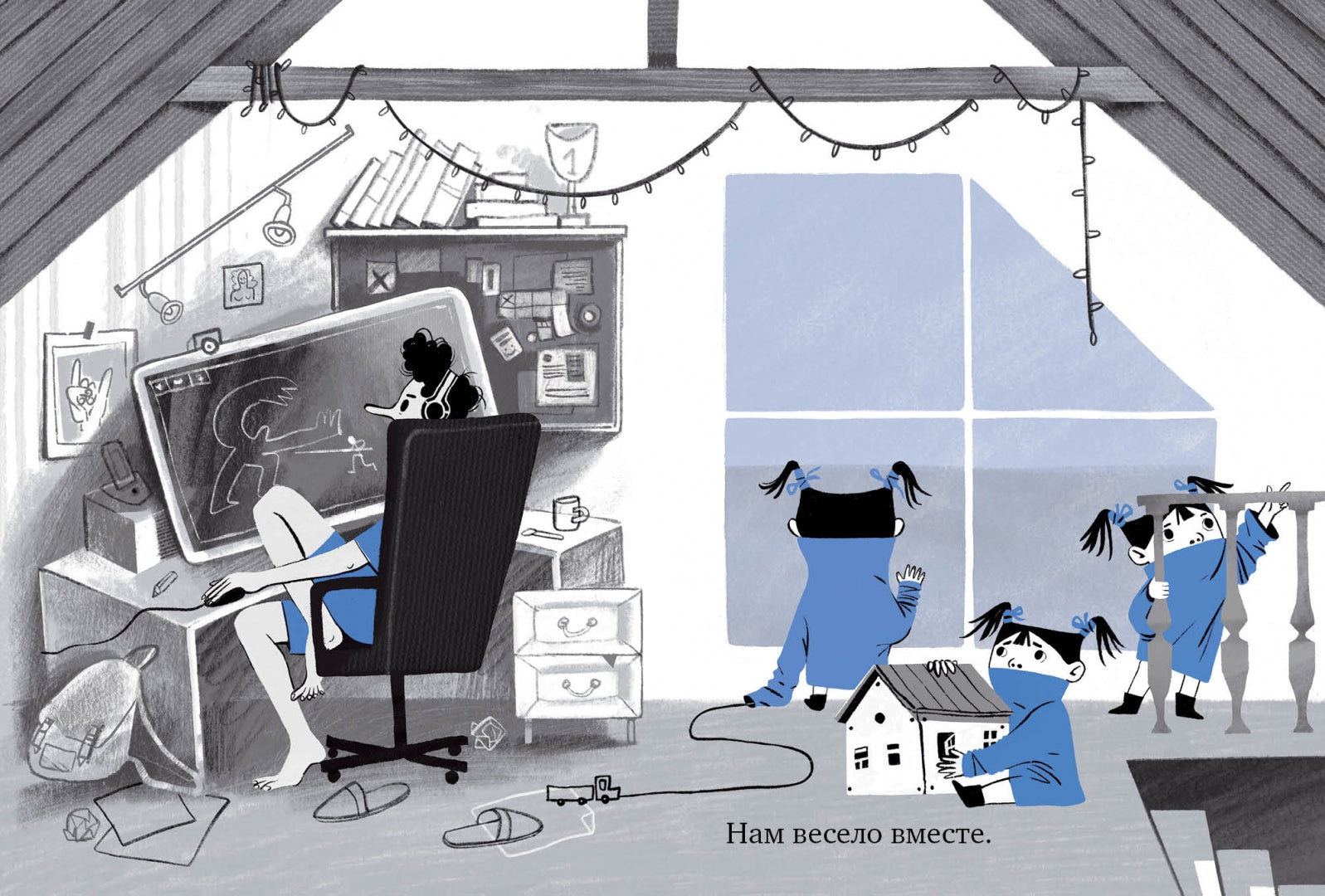 Синяя книга про маленькую девочку, которая, столкнувшись со своей обидой и злостью на равнодушие родителя, превращается в монстра и всё разрушает — так я видела идею будущей книги.